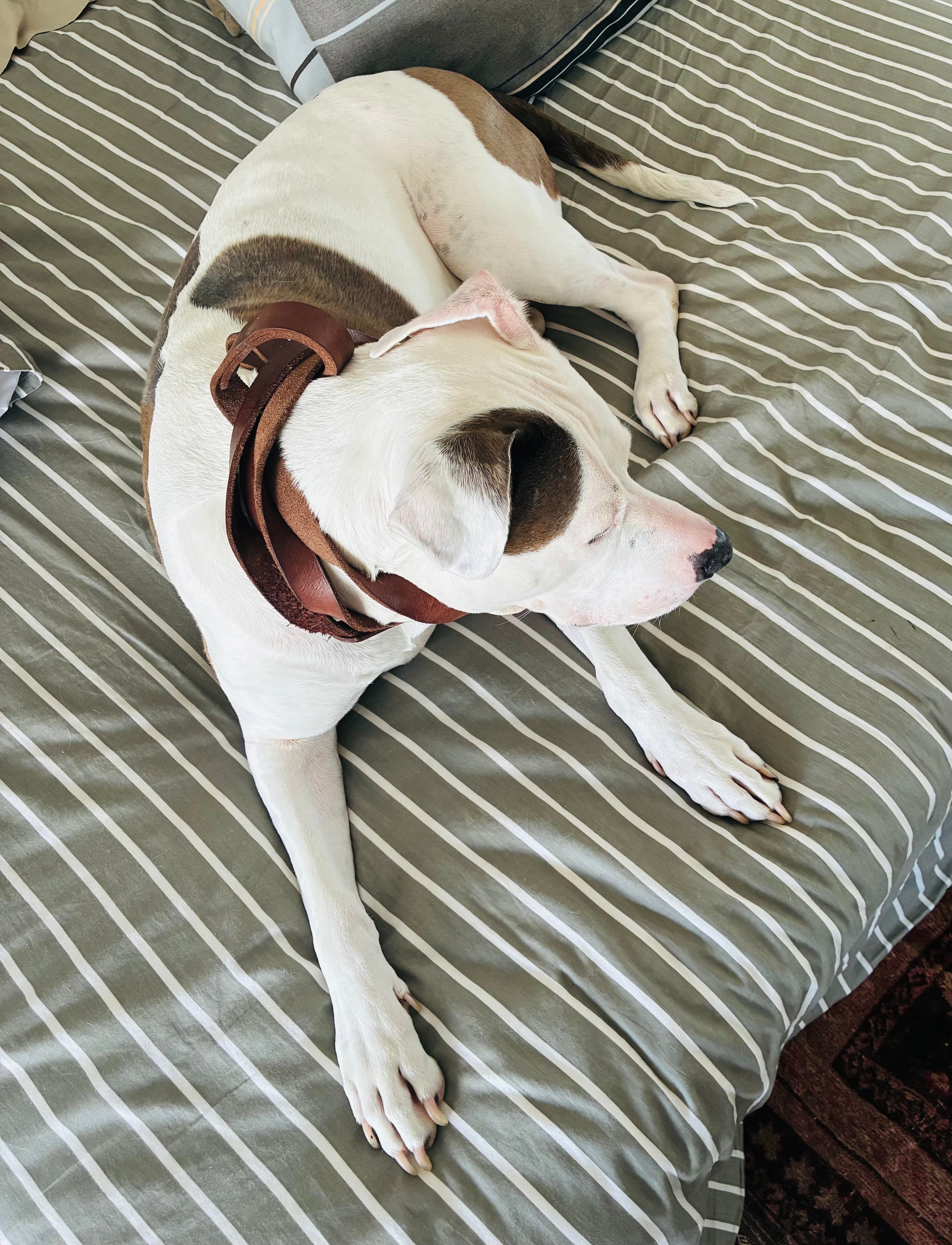 In the meantime, Sallie wishes to be taken for a walk and has adorned herself appropriately.