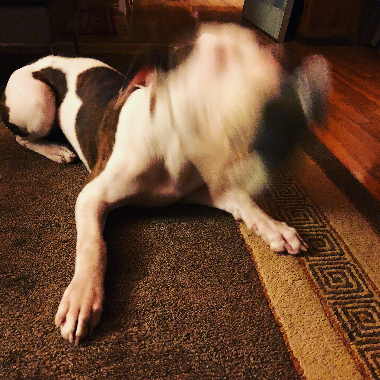 Here’s a vintage photograph of Sallie, from when she first came to live with us nearly a decade ago, doing her celebrated impression of a Francis Bacon painting.